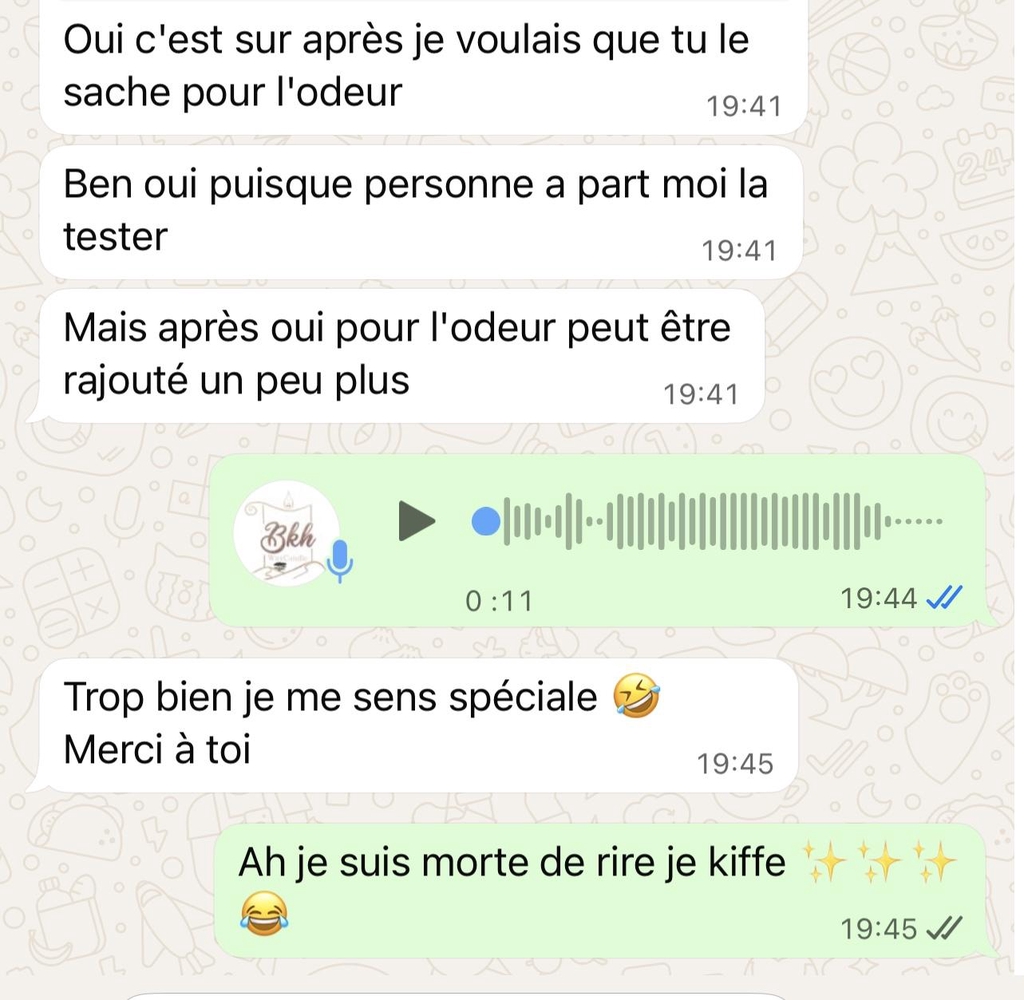 Bkhwaxcandle est née de mon envie de partager une idée qui me tenait à cœur depuis toujours : créer des atmosphères uniques et chaleureuses, inspirées de mon héritage natal. Au départ, je souhaitais travailler avec des ingrédients très délicats, mais leur complexité m’a poussée à explorer d’autres méthodes, tout en préservant l’authenticité et la richesse des senteurs.
